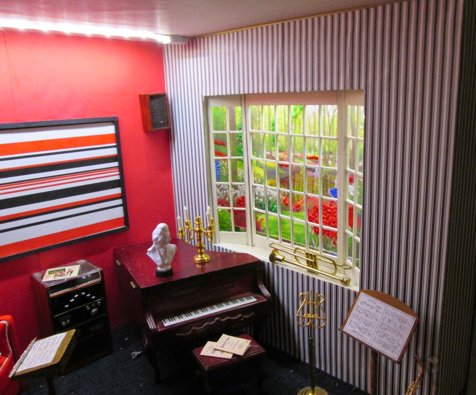 The music room was just about finished for the Show and Sale but it was so dark that none of the lights I had were bright enough so decided to wait until I could fix that before I showed it.